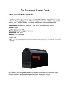 Reserve at Spencer Creek Official Community Mailbox Specification